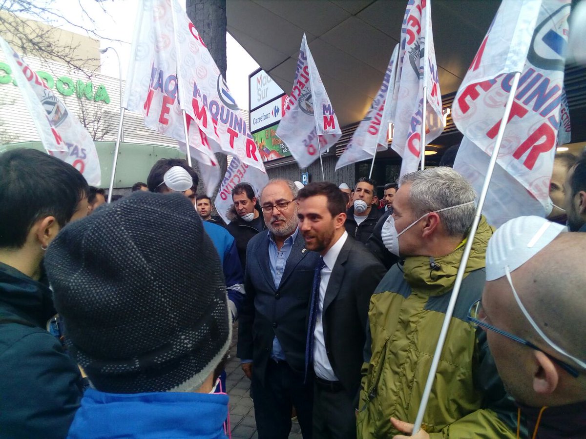 Con Alberto Oliver, portavoz de Transportes de Podemos en la Asamblea de Madrid y coautor de este artículo, con los sindicatos de Metro en una protesta contra la presencia de amianto frente al parlamento madrileño