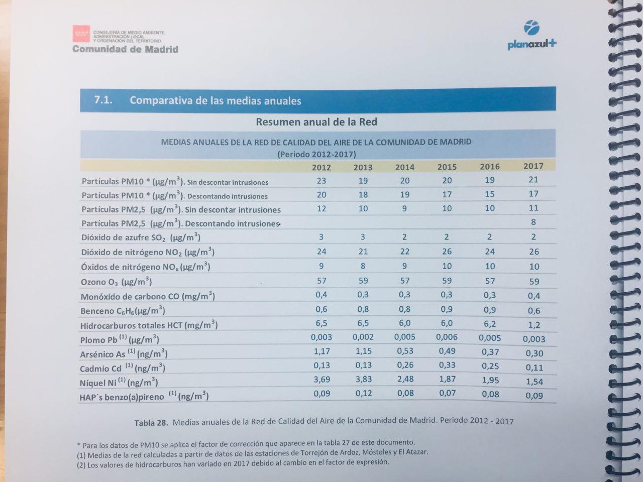 La realidad es que entre 2016 y 2017 la calidad del aire ha empeorado en toda la región. De hecho, en las estaciones de medición de contaminantes de la red de seguimiento de la Comunidad de Madrid aumentó el número de superaciones de NO2 un 360%, de 6 a 22, aumentaron un 6% las superaciones del valor límite diario de las PM10 y también han aumentado el número de superaciones de ozono respecto a 2016. El informe completo correspondiente a 2017 de la Red de Calidad del Aire de la Comunidad de Madrid puede consultarse aquí: